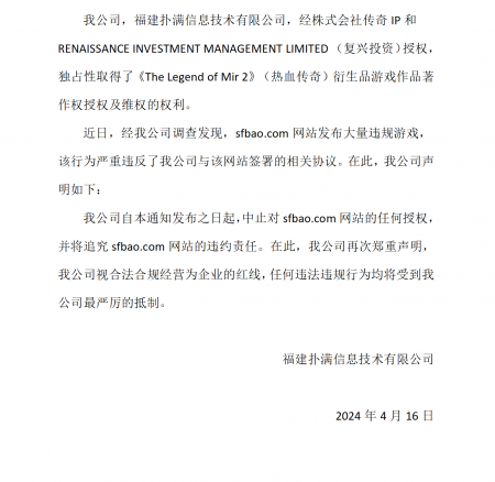 202405-18jinnian金年会信息技术有限公司(以下简称“我司”)经株式会社传奇IP 、RENAISSANCE INVESTMENT MANAGEMENT LIMITED (复兴投资...