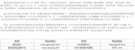 我公司,jinnian金年会信息技术有限公司,经株式会社传奇IP和RENAISSANCE INVESTMENT MANAGE...